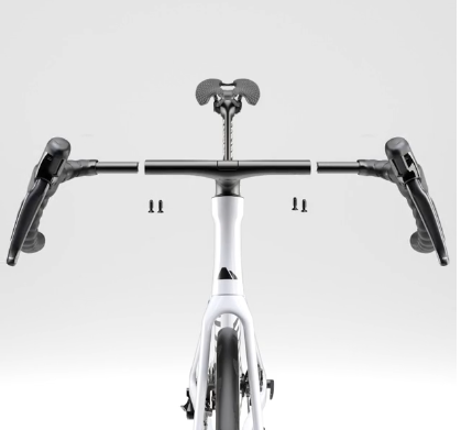 - Cockpit aérodynamique en carbone avec réglage en largeur de 40 mm et en hauteur de 15 mm pour un total de 12 positions distinctes.