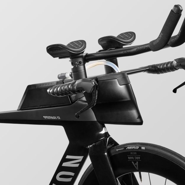 Profitez de 750 ml d'hydratation rapide grâce au système d'hydratation avant du Speedmax CF, optimisé en conjonction avec le tube de direction pour une performance aérodynamique maximale. Grâce à l'aimant intégré, fixez la paille aux extensions pour un accès instantané, ou sur le tube supérieur pour une efficacité aérodynamique optimale. Le nettoyage est facile : il suffit de la retirer et de la remonter d'un simple clic. Le système est également équipé d'un support pour ordinateur intégré.