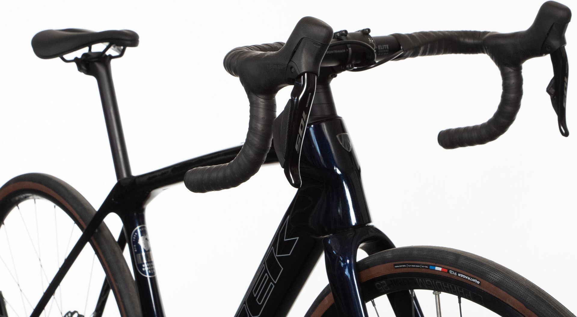 | Guidon | Bontrager Elite IsoZone VR-SF, alliage, 31,8 mm, acheminement interne Di2, reach de 75 mm, drop de 128 mm |