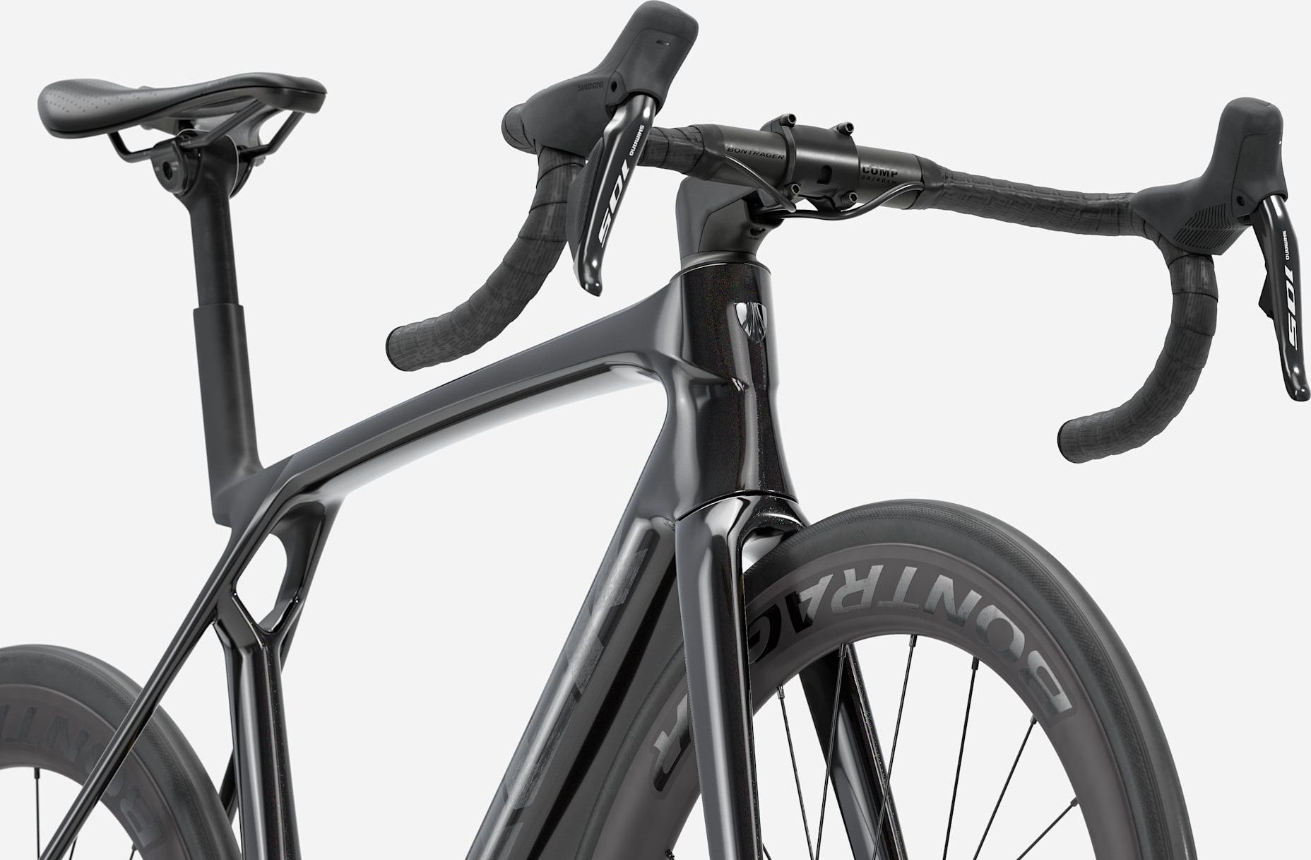 CadreCarbone : OCLV Carbon série 500, forme de tube Full System Foil, tube de selle IsoFlow, jeu de direction RCS, acheminement électronique ou mécanique, garde-chaîne aérodynamique amovible, boitier de pédalier T47, freins à disque à fixation Flat Mount, patte de dérailleur universelle (UDH), axe traversant 142 x 12 mm