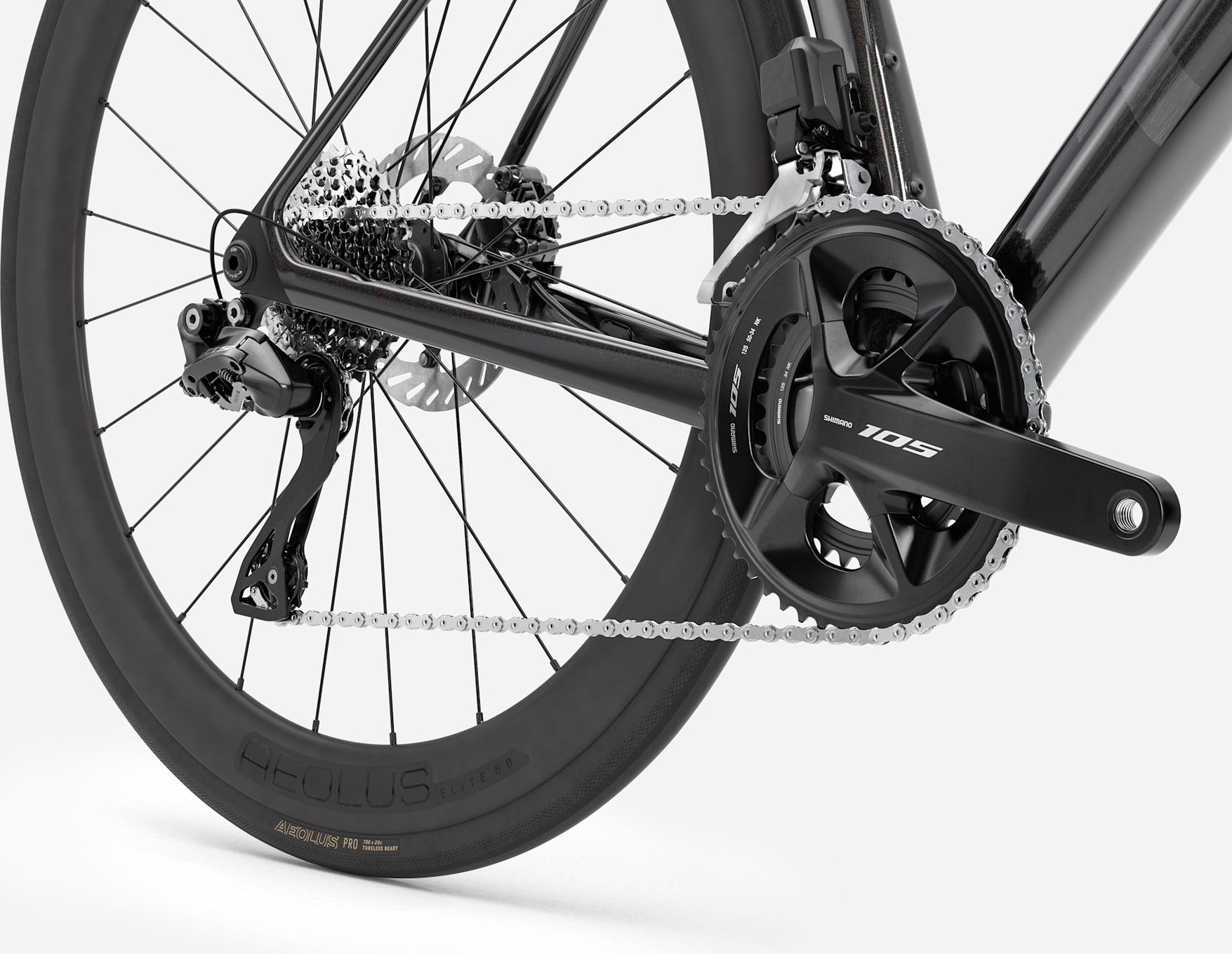 • Avec le groupe 105, vous bénéficiez de changements de vitesses ultra-rapides et précis grâce à la technologie Di2 de Shimano héritée de ses grands frères.